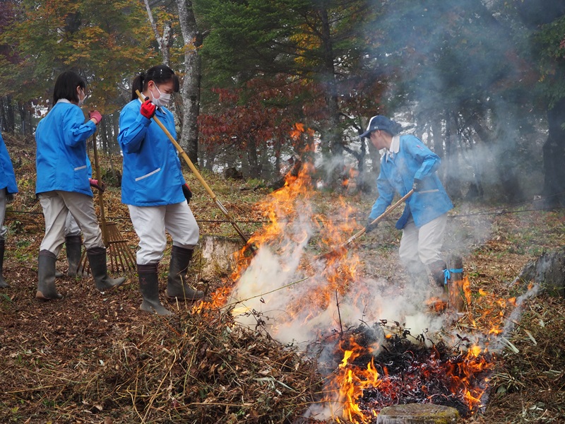枯れ草を集め、野焼きを体験。富士見高校の生徒が富士見パノラマリゾートで山野草の保全活動に参加